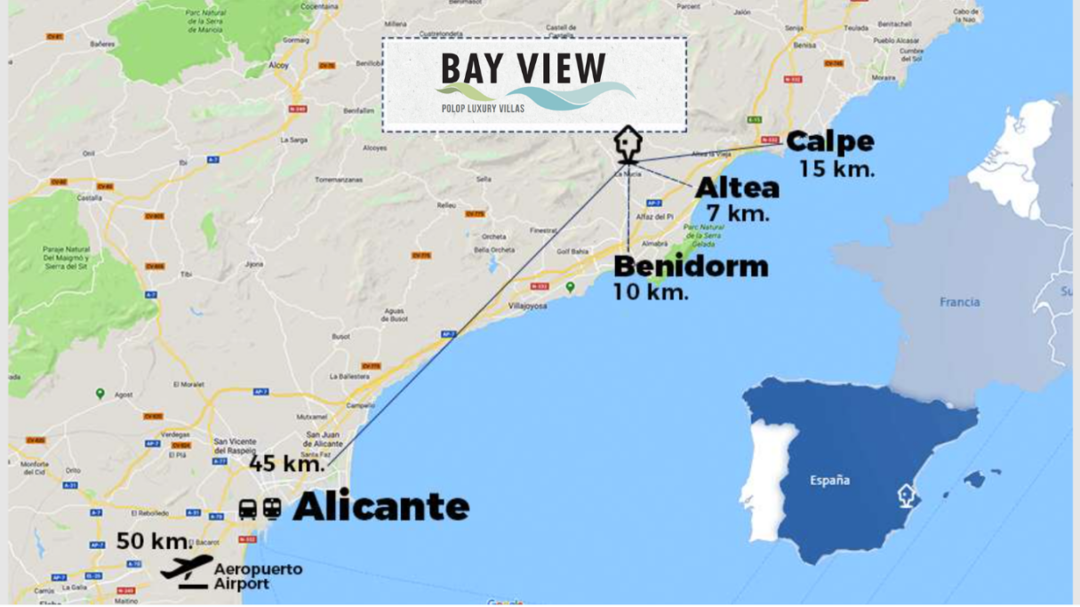 7 Km d'Altea – 10 Km de Benidorm – 15 km de Calpe